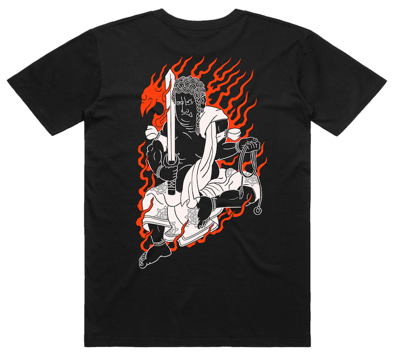 Digital print on black AS Colour Staple tee. Design by Rob Mopar.